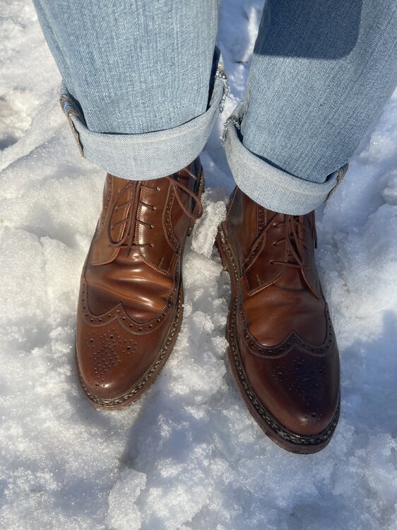Hej witamy na forum W zasadzie nie wiem i mam nadzieję, że któryś z bardziej doświadczonych forumowiczów przyjdzie z odsieczą Nie wiem też czy jest sens poświęcać zbyt dużo czasu na odkrycie czy to full grain/genuine/bonded leather, bo CCC (właściciel marki Lasocki) prawdopodobnie sam tego nie wie. CCC używa stwierdzenia "skóra naturalna" i właściwie nie wiadomo co pod tym się kryje. Zależy czego oczekujesz - każde buty się rysują i marszczą. Zobacz np. https://www.patinaproject.com/best/photos/2025 albo wątek poniżej żeby porównać czy nawet te droższe buty starzeją się tak jak byś oczekiwał. Zarysowania zazwyczaj się maskuje poprzez pastowanie, a marszczenie spowalnia się używając prawideł. Myślę, że takie podstawowe dbanie o buty jak: używanie prawideł, dawanie butom odpocząć 24h od ostatniego dłuższego użytkowania, pastowanie żeby ukryć niedoskonałosci, strząchiwanie szczotką błota i soli (ew. mokrą szmatką) pomogłoby każdym butom. Więc jeżeli np. nie używasz prawideł to warto nawet kupić te najtańsze, plastikowe niecedrowe za 10zł (możliwe że CCC sprzedaje jakieś) i zobaczyć czy widzisz zmianę na lepsze. Choć wiadomo, taki (prawdopodobnie) bonded leather najprawdopodobniej nie zachowa się tak samo jak faktyczna 100% skóra. Co do zarysowań wydaje mi się że może to być właśnie wierzchnia warstwa plastiku, która jest delikatniejsza niż skóra i po prostu łatwiej schodzi. Nawet po pastowaniu widać będzie widać miejsce w którym "brakuje" plastiku, bo powierzchnia buta będzie nierówna. Ale lepsze pastowanie niż nic. Jako konsument patrząc na opis produktu czy zdjęcie na stronie internetowej często trudno jest znaleźć coś co utwierdza nas w przekonaniu "o, to jest dobrej jakości". Jednak wraz z wzrostem ceny butów jest tendencja do tego, że opisy produktów zmieniają się tak: CCC: "buty wykonane z wysokiej jakości skóry zachwycają solidnym wykonaniem i ponadczasowym stylem. Materiał zewnętrzny: Skóra naturalna" [producent butów sprzedający buty za 250 euro]: "Buty z zamszu pochodzącego z brytyjskiej garbarni Charles F. Stead, na podeszwie firmy Vibram" No i taka brytyjska garbarnia już raczej nie robi bonded leather Oczywiście między Lasockimi za 50 eur a cytowanymi 250 eur jest przepaść cenowa, ale takie fajniejsze buty zaczynają się od dajmy 700zł (165 eur). Może być tak, że dana firma z tymi fajniejszymi butami ma tak szczegółowe opisy tylko w butach za 250 EUR, a w tych za 160 jest już bardziej tajemnicza (chińską garbarnią nie można tak samo się chwalić jak angielską) , ale zawsze to większe *prawdopodobieństwo* że dostajemy OK produkt kupując od nich właśnie. Nie hejtuję CCC, po prostu dostarczają to co jest możliwe w swojej półce cenowej.2 punkty