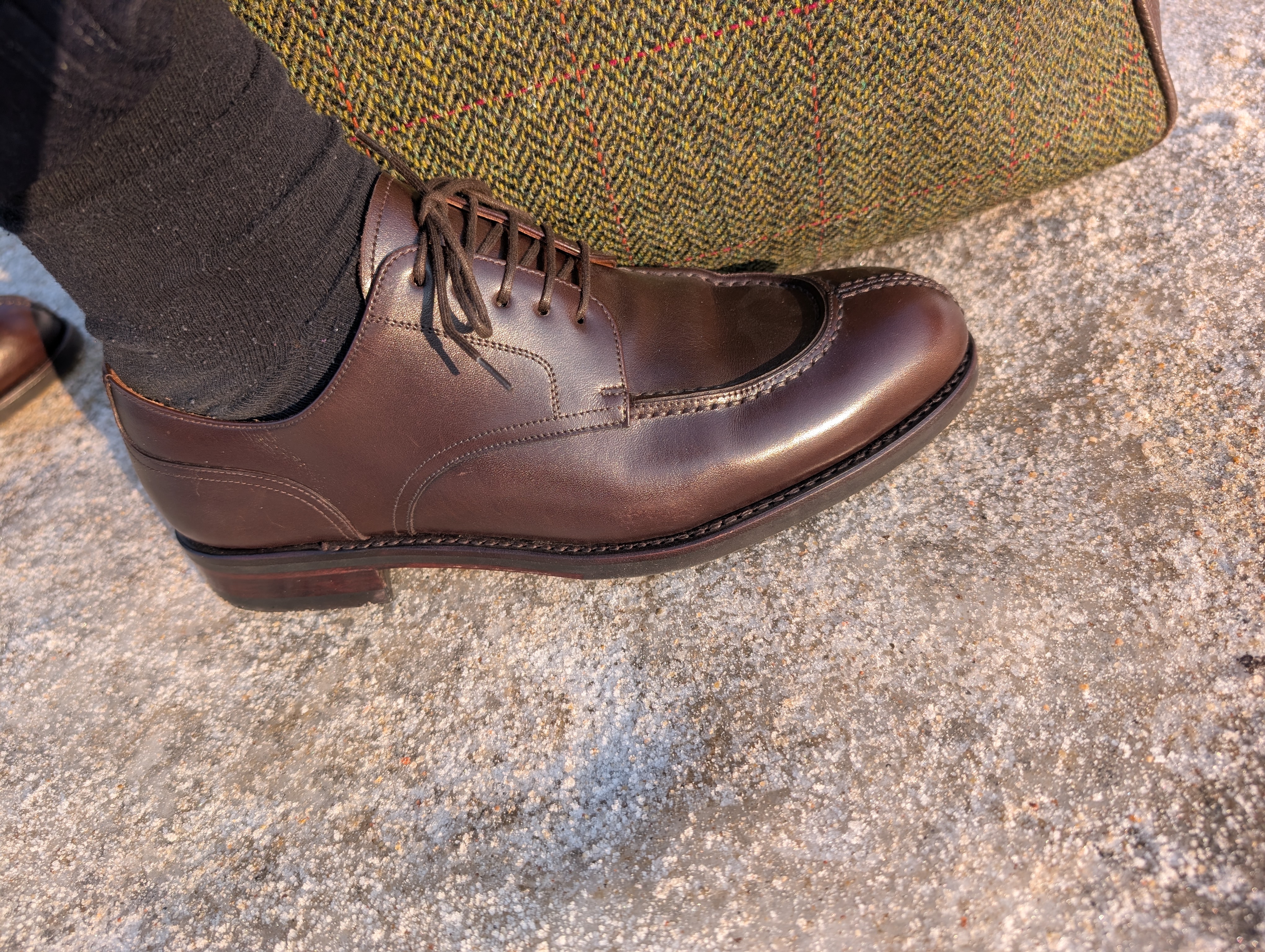 Pomyliłem się ostatnio w wyborze butów i założyłem świeżo odsolone i wyczyszczone buty na odwilż. Niestety na terenie fabryki wszystko mocno posypano sola, efektem było poważne zasolenie butów, aż do wystąpienia "zgrubień" od soli na noskach. Zwykle stosowanie odsalacza od Saphira nie przynosiło sukcesów, co najwyżej zmieniało przebieg zgrubienia. W końcu, po zużyciu sporej części butelki zmieniłem metodę i okładałem cały nosek wacikami kosmetycznymi następnie nasączając je odsalaczem. Powtórzyłem proces 2-3 krotnie w międzyczasie spłukując wciąż jeszcze wilgotny nosek (po zdjęciu wacików) woda. Ślady po soli zniknęły, ale zajęło to dużo czasu i kosztowało mnie sporo stresu.3 punkty