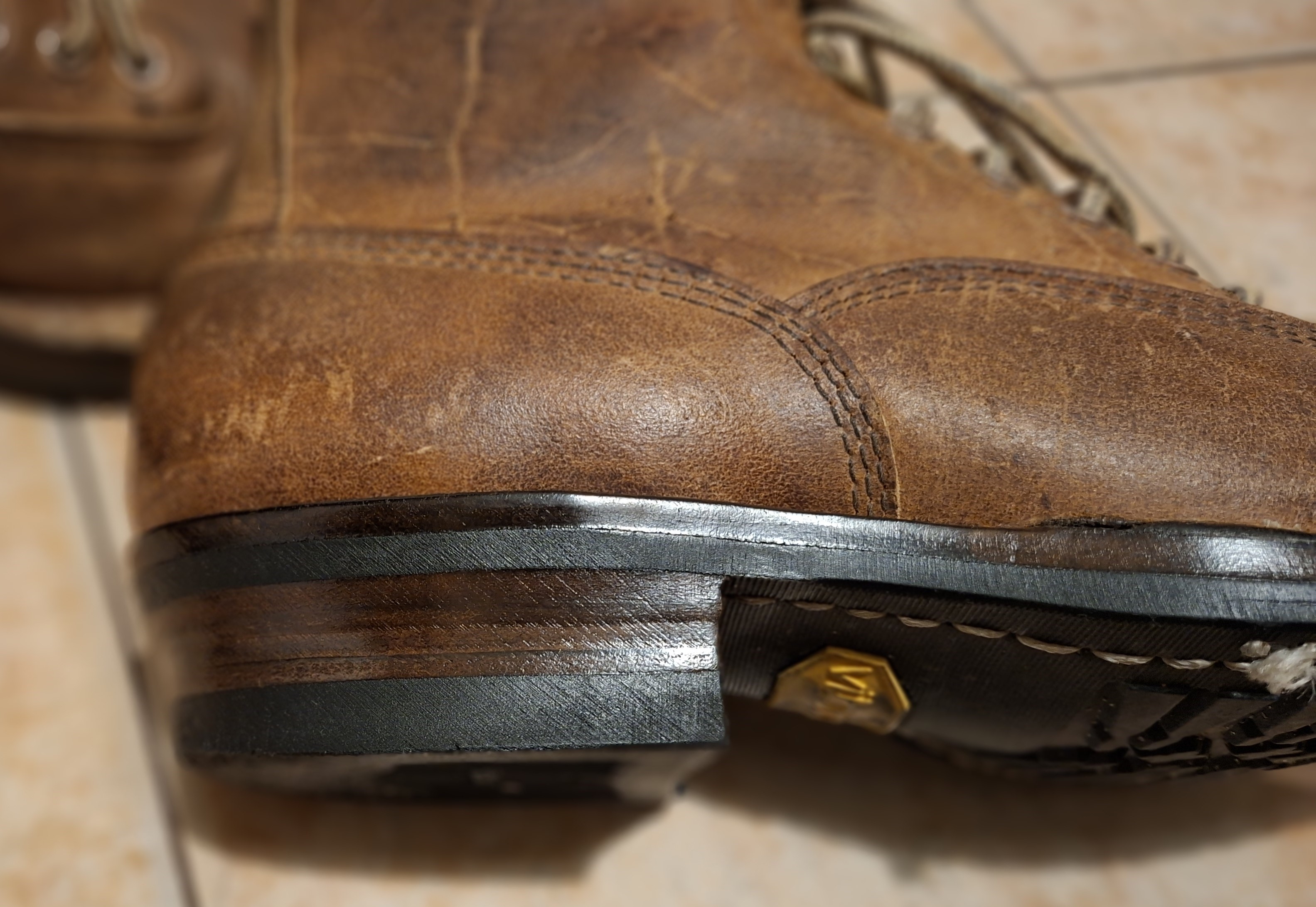 Na początku, tytułem wstępu. W Europie olej z norek niegdyś był normalnym surowcem kosmetyczny, został jednak odsądzony od czci i wiary, bo bambiniści byli smutni. Jest jednak kraj na świecie, gdzie miotacz ognia to narzędzie rolnicze, zaś dostęp do broni automatycznej jest prawem człowieka (w przeciwieństwie do dostępu do opieki zdrowotnej). Innymi słowy - kupiłem 16 uncji w Stanach Zjednoczonych. Nie polecam tego kraju na zakupy online (choć sam sprzedawca, pani Linda, była super). Olej pachnie bardzo przyjemnie. Trochę się bałem hmm... zwierzęcego aromatu? W każdym razie, zapach ma jak... tłuszcz do skór. A raczej - tłuszcze do skór pachną jak olej z norek. W temperaturze pokojowej jest ciałem płynnym, przezroczystym, koloru słomkowego. Podobno można stosować go oprócz kosmetyków i produktów do pielęgnacji butów jeszcze do wyrobu mydeł (musze spróbować). Aplikowany na skórę, wchłania się szybko i całkowicie, zmiękcza i wygładza lico (pewnie ludzkie lico też). Po samej aplikacji skóra jest znacznie ciemniejsza, ale ten efekt w znacznej mierze znika po 24h (jednak nadal widać różnicę w barwie). Sam mink oil zapewnia wodoodporność ŻADNĄ. Dokładnie żadną. Po prawo to próbka oleju z norek. Innymi słowy, może stanowić dodatek do past do butów, mający na celu odżywienie skóry (sądzę, że w tej roli spisuje się doskonale, ale to wymaga dłuższych testów), ale nawet w najmniejszym stopniu nie ochroni buta przed wodą. Na pewno spróbuje połączyć go z woskiem pszczelim i być może olejkiem jojoba (roślinny wosk naturalny, opóźnia utlenianie i psucie się tłuszczy, powinien przedłużyć datę ważności pasty, choć nie wiem, czy powinienem myśleć aż z takim wyprzedzeniem).3 punkty