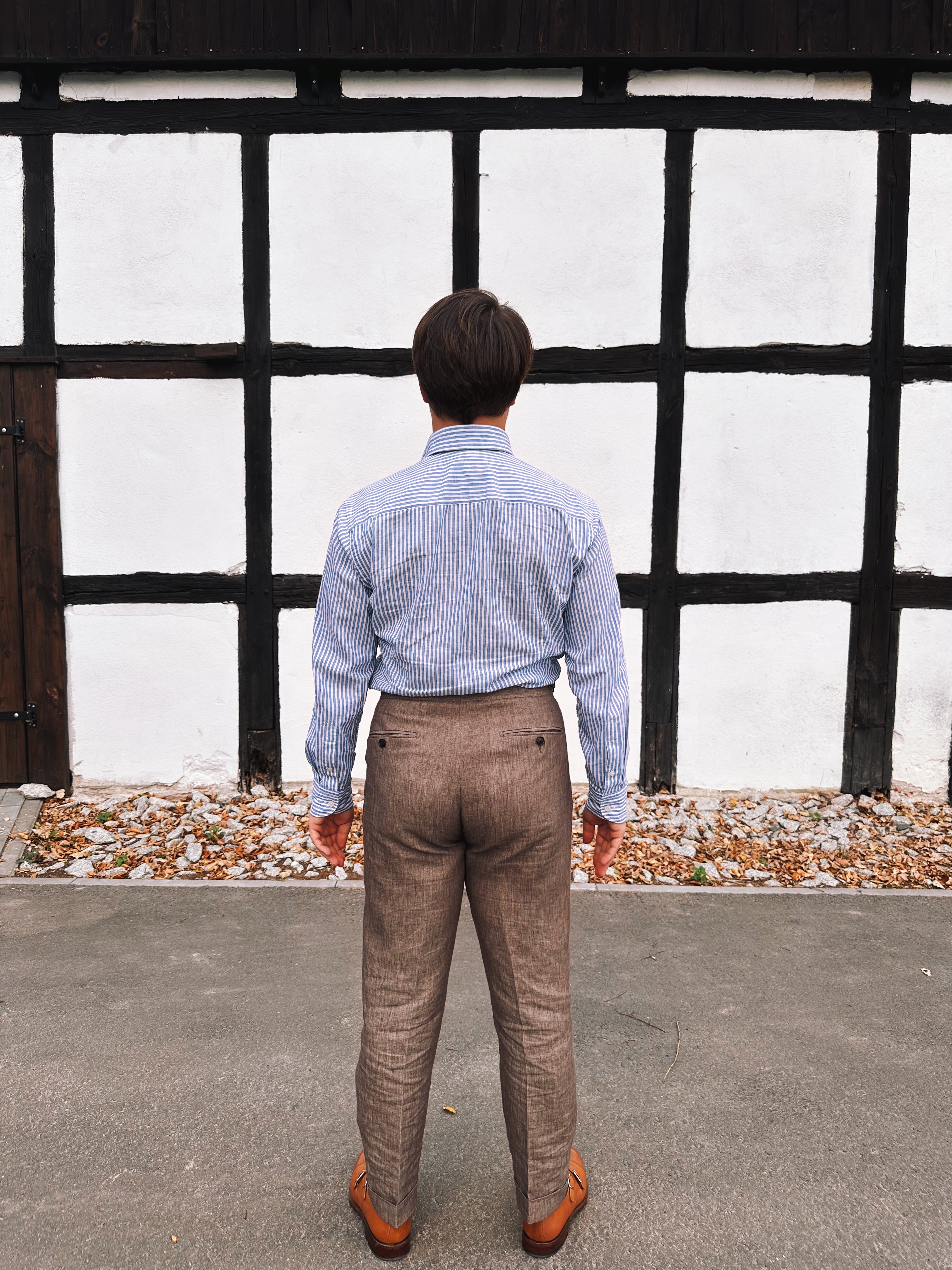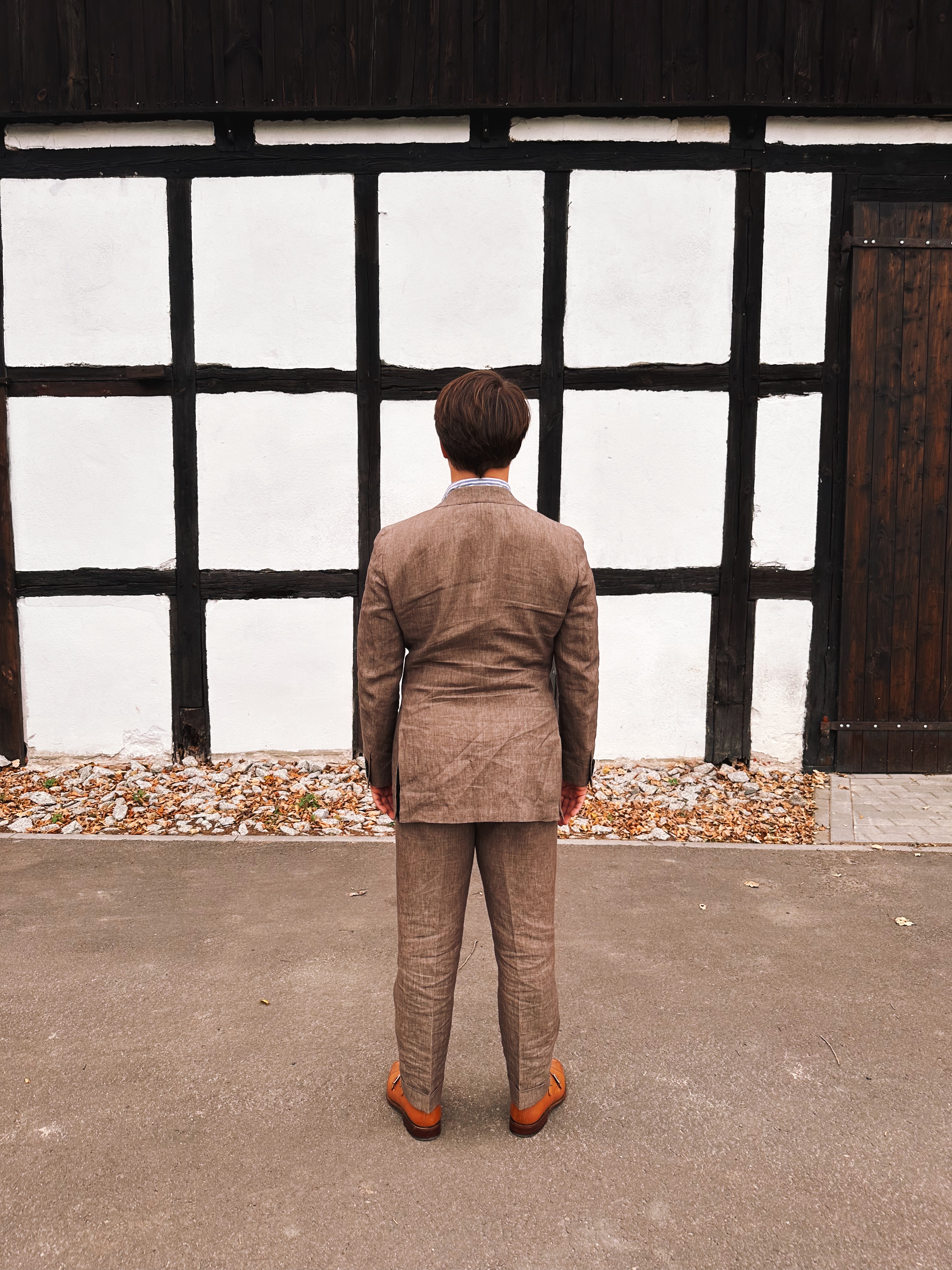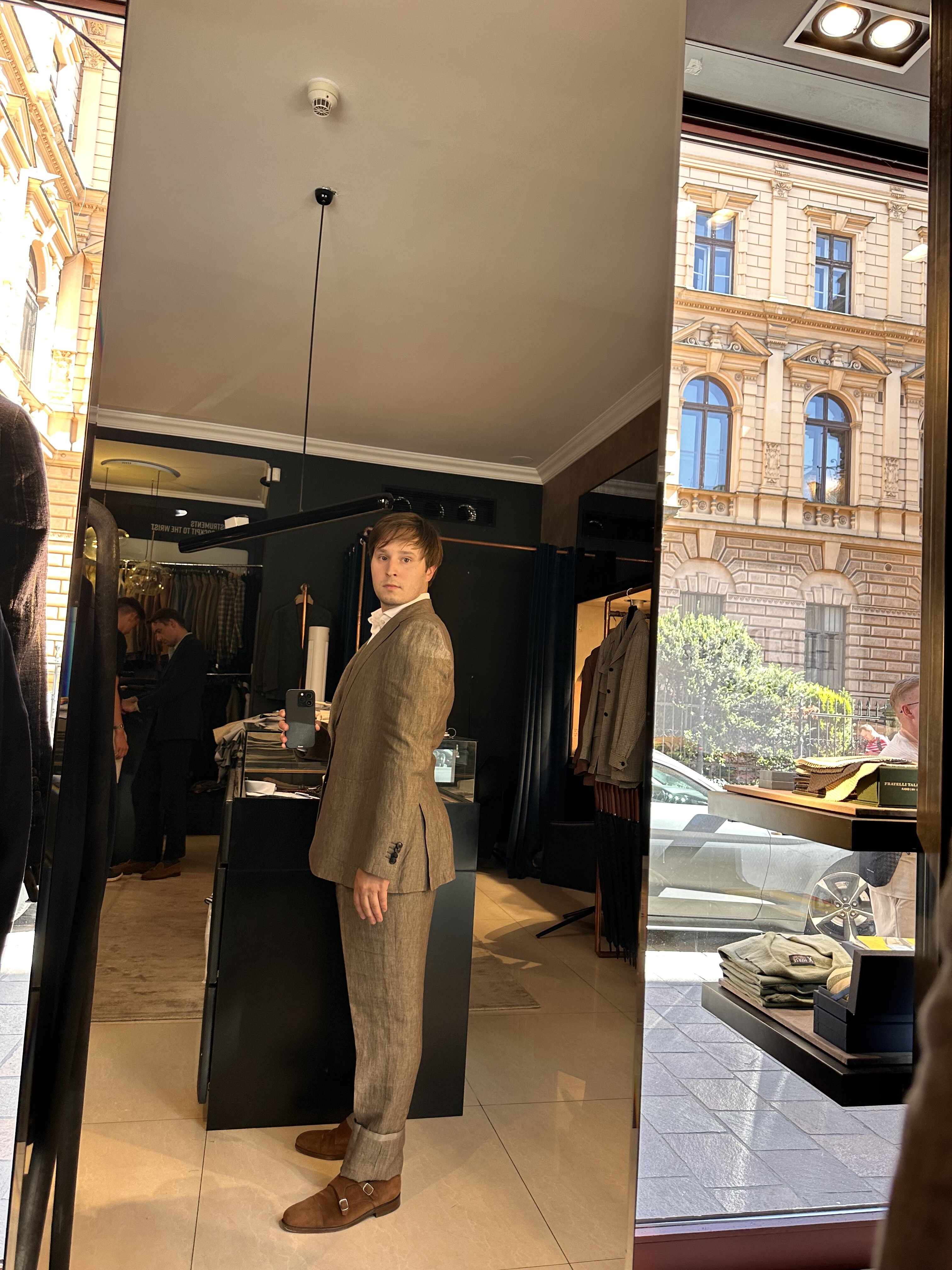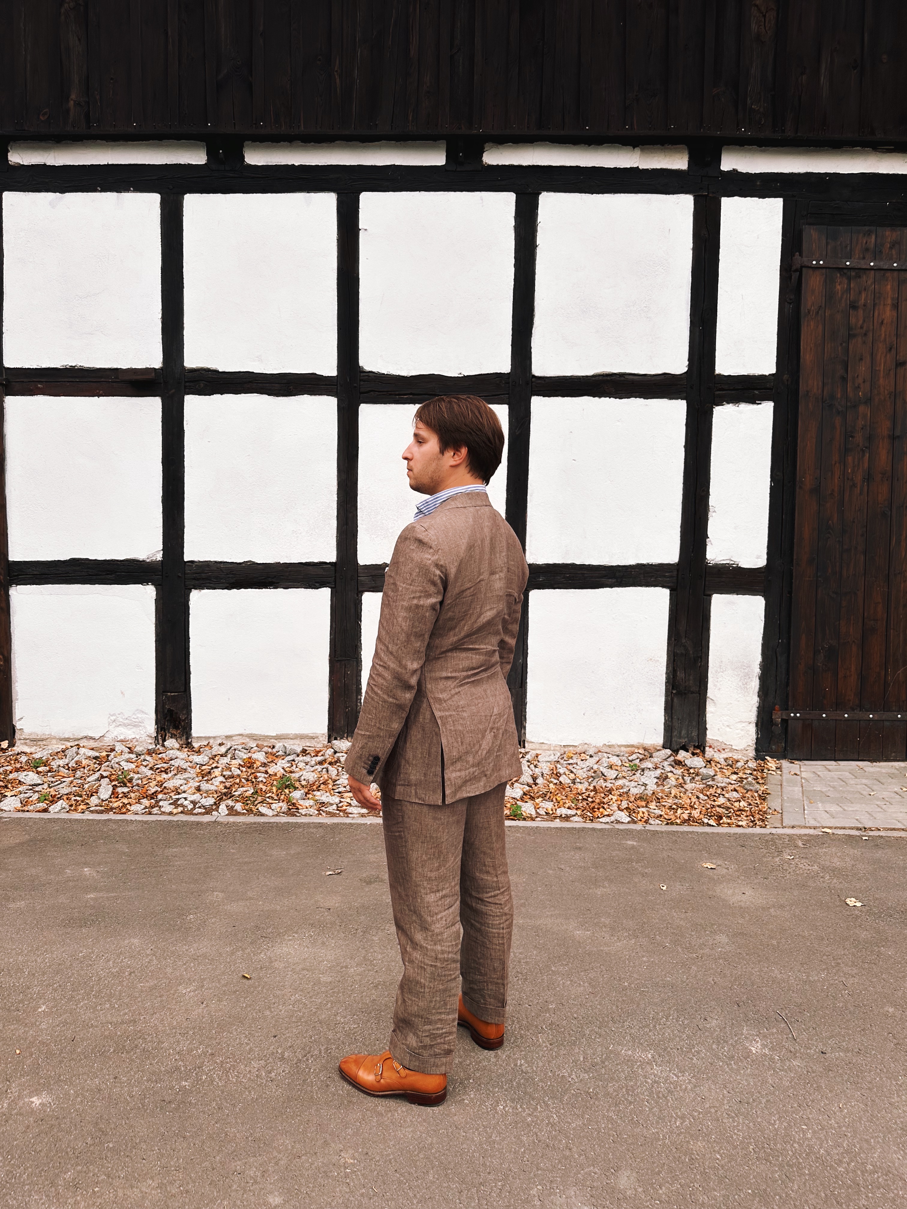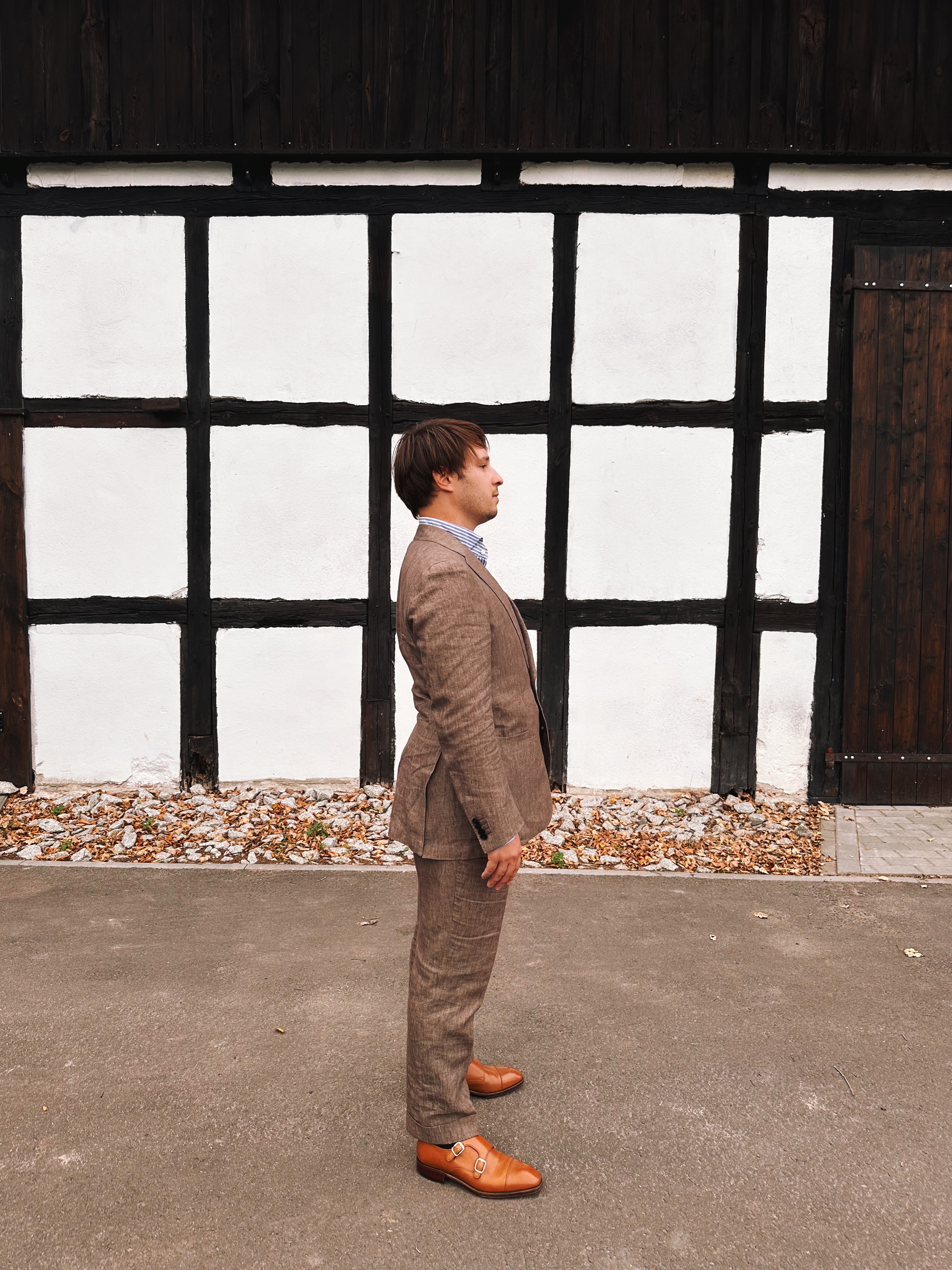 mlesniowski Napisano 31 Sierpień Zgłoszenie Share Napisano 31 Sierpień Choć garnitury z wieszaka leżą na mnie źle lub bardzo źle, to ostatnio zdecydowałem się na zakup lnianego garnituru z Herse i przeróbki u p. Cecyli Job z Starowiślnej 84. Może to nieodzowna potrzeba zmieniła moją percepcję, niemniej garnitur już na etapie zakupu w salonie wydawał się leżeć znacznie lepiej niż te, które do tej pory przymierzałem (do zobaczenia choćby w wątku Forumowa poradnia stylistyczna). Zdecydowałem się więc zaryzykować i rozpocząć eksperyment z poprawkami krawieckimi, ażeby zobaczyć na ile można taką sytuację wyciągnąć i sprawdzić, czy nieodzownie jestem skazany na szycie miarowe. Na ścianie zakładu wisi dyplom mistrzowski, a p. Cecylia należy do Cechu Krawców w Krakowie. Jest ona miłą i komunikatywną osobą, toteż ustalenie potrzeb i oczekiwań nie stanowiło wyzwania. Poza oczywistymi sprawami typu długości i zebranie nadmiaru materiału, przyszedłem z otwartym pytaniem na ile można wyprowadzić plecy, dążąc do możliwie małego załamania w talii. W trakcie przymiarki lista poprawek została precyzyjnie spisana i wyceniona (640 zł), a następnie otrzymałem karteczkę z zleceniem. Garnitur oddałem w poniedziałek rano, a już w środę przed zamknięciem pracowni był gotowy (potrzebowałem go na czwartek). Podczas przymiarki w dniu odbioru miałem drobne uwagi, a i p. Cecylia wyłapała coś, co się jej nie podobało. Została ona po godzinach i przygotowała garnitur na poranek kolejnego dnia. Skracałem też rękawy w koszuli wraz z przeniesieniem guzików. Po tej operacji guziki zostały wszyte nieestetycznie, w dwóch różnych miejscach w zależności od rękawa. Skupiony na garniturze, uznałem to za detal nie wart komentarza, ale na następny dzień i one były już w właściwym miejscu. Samą obsługę i kontakt oceniam pozytywnie, natomiast jestem bardzo zainteresowany Waszą oceną efektu. Zastanawiam się, czy mogłem jeszcze coś zasugerować albo wymagać jakichś dodatkowych zmian, które mogłyby polepszyć sytuację? Następnym razem na pewno poprosiłbym o minimalnie krótsze rękawy zarówno marynarki, jak i koszuli. Na zakończenie w ramach ciekawostki: krakowski salon Herse też oferuje usługę poprawek właśnie przy udziale p. Cecylii. Wydaje się to dość wygodne, choć szczególnie w przypadku większych zmian, lepiej jeśli przymiarka i zaznaczenie korekt odbędzie się w zakładzie przy ul. Starowiślnej. Po: Przed: 2 Cytuj Odnośnik do komentarza Udostępnij na innych stronach More sharing options...